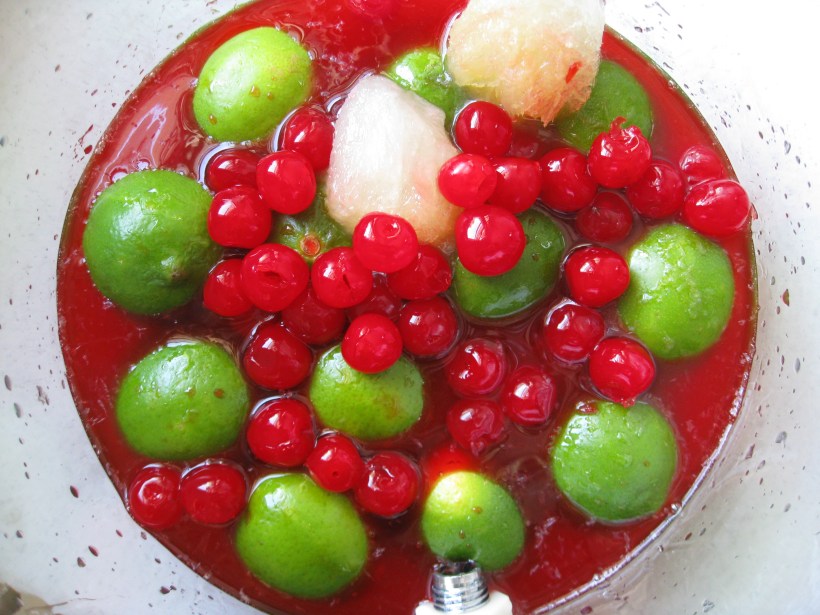 I made some lime ice cubes to garnish the drink as well. You can use the cherries to garnish the individual drinks, or do like I did – emptied the whole dang jar into the dispenser.
