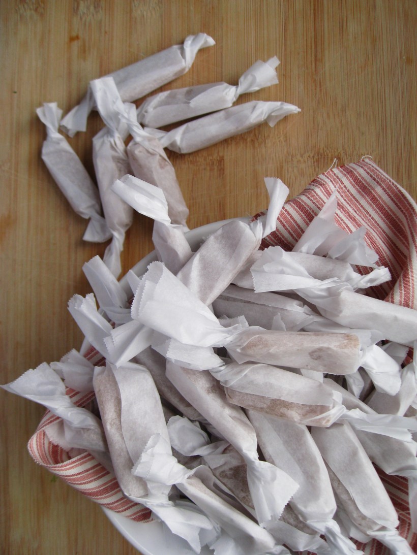 - Cut caramels into desired size and wrap with parchment paper.