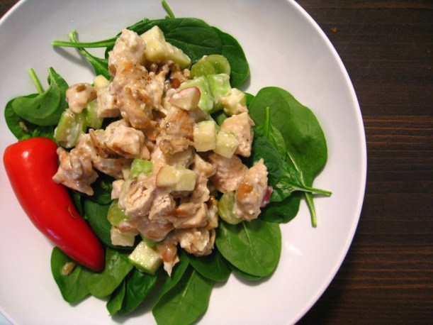 I don’t think I have ever, in my 24 years, had Chicken Waldorf Salad before. Ever. Not in a restaurant, at a friend’s house, at a picnic, at a pot lock, and any other scenario you can think of. I’ve heard of it, I’ve seen it on menus, but I’ve never eaten it. I don’t know what overcame me to make it at home, but boy am I glad I did! I loved this dish. It was a nice break from all the “heavy” winter foods I’ve been eating and it was so simple to put together. I based it off a recipe I found on Eating Well. I think this will be my go-to recipe for using up leftover chicken from now on!