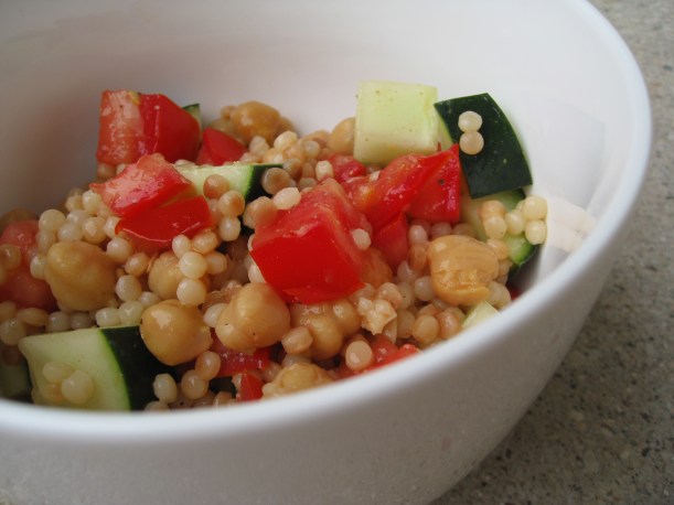 Have I mentioned that I love Trader Joe’s Israeli couscous?! Come to think of it, the chickpeas and olive oil were also from Trader Joe’s. I should just name this Trader Joe’s Israeli Couscous Salad!