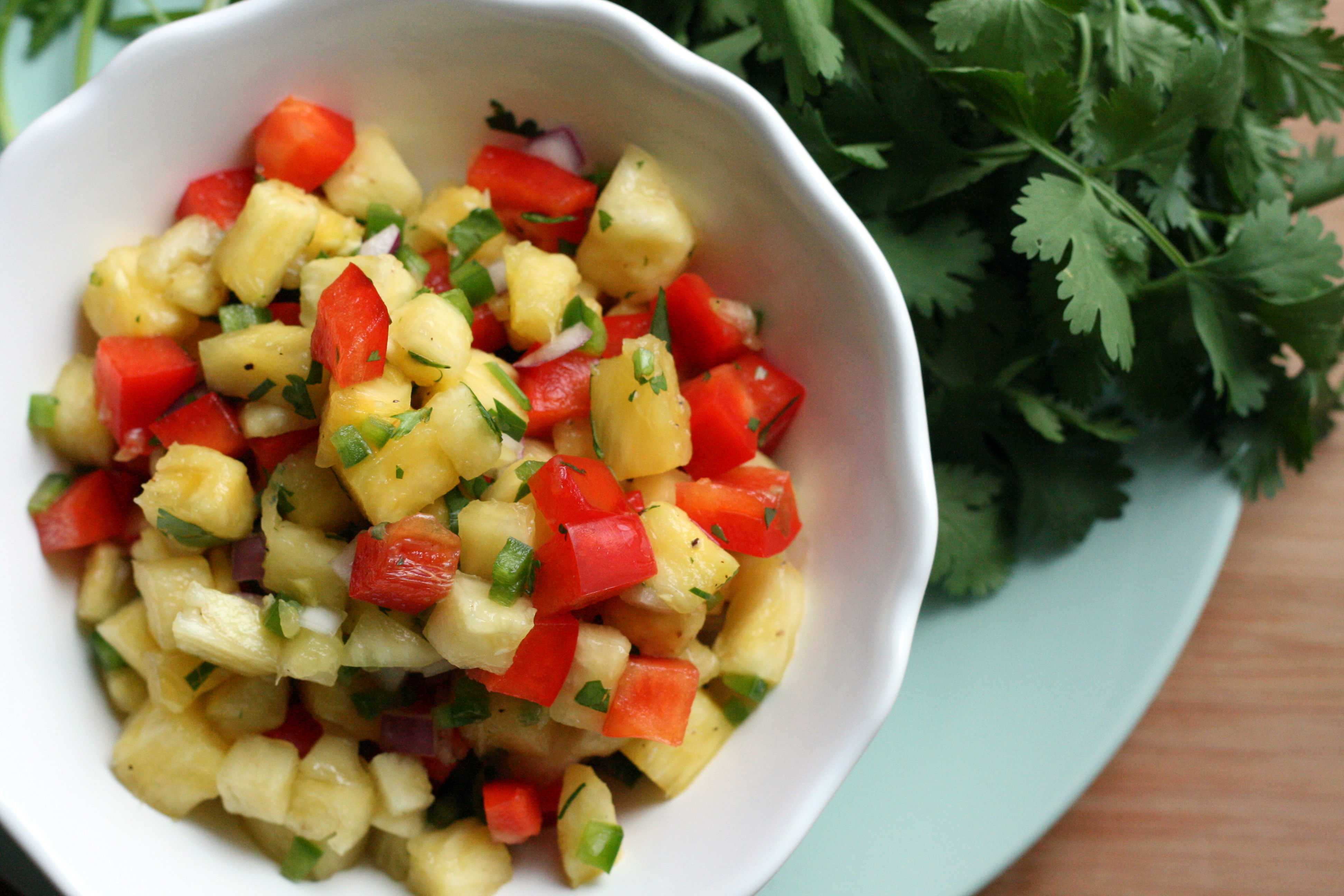 This pineapple salsa is sweet with the perfect amount of heat. It’s super versatile, too. I ate it with chicken, with pretzel thins, and even just straight-up with a spoon.